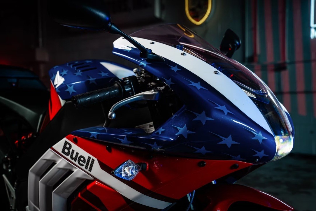 Lo primero en lo que destaca esta novedad es por su diseño visual. El aspecto de las barras y estrellas se extiende a lo largo del perfil aerodinámico de la Hammerhead, mientras que la fibra de carbono en bruto brilla a través del emblema transparente de BUELL.  La marca la posiciona como «testimonio de la artesanía ligera estadounidense y un rendimiento implacable». Diseñada para quienes conducen con orgullo en honor a este gran país, con una relación peso-potencia inigualable».