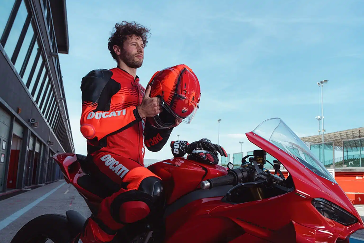 Para completar el equipo, el casco Ducati Corse V9 by Arai, con gráficos de Aldo Drudi inspirados en los colores de MotoGP, ofrece el máximo nivel de protección y confort. La gama se enriquece con la chaqueta Ducati Corse C7, una prenda de alta gama para quienes buscan protección y estilo incluso fuera de la pista. También disponible en versión perforada, está confeccionada en piel de vacuno altamente resistente a la abrasión y al desgarro. .