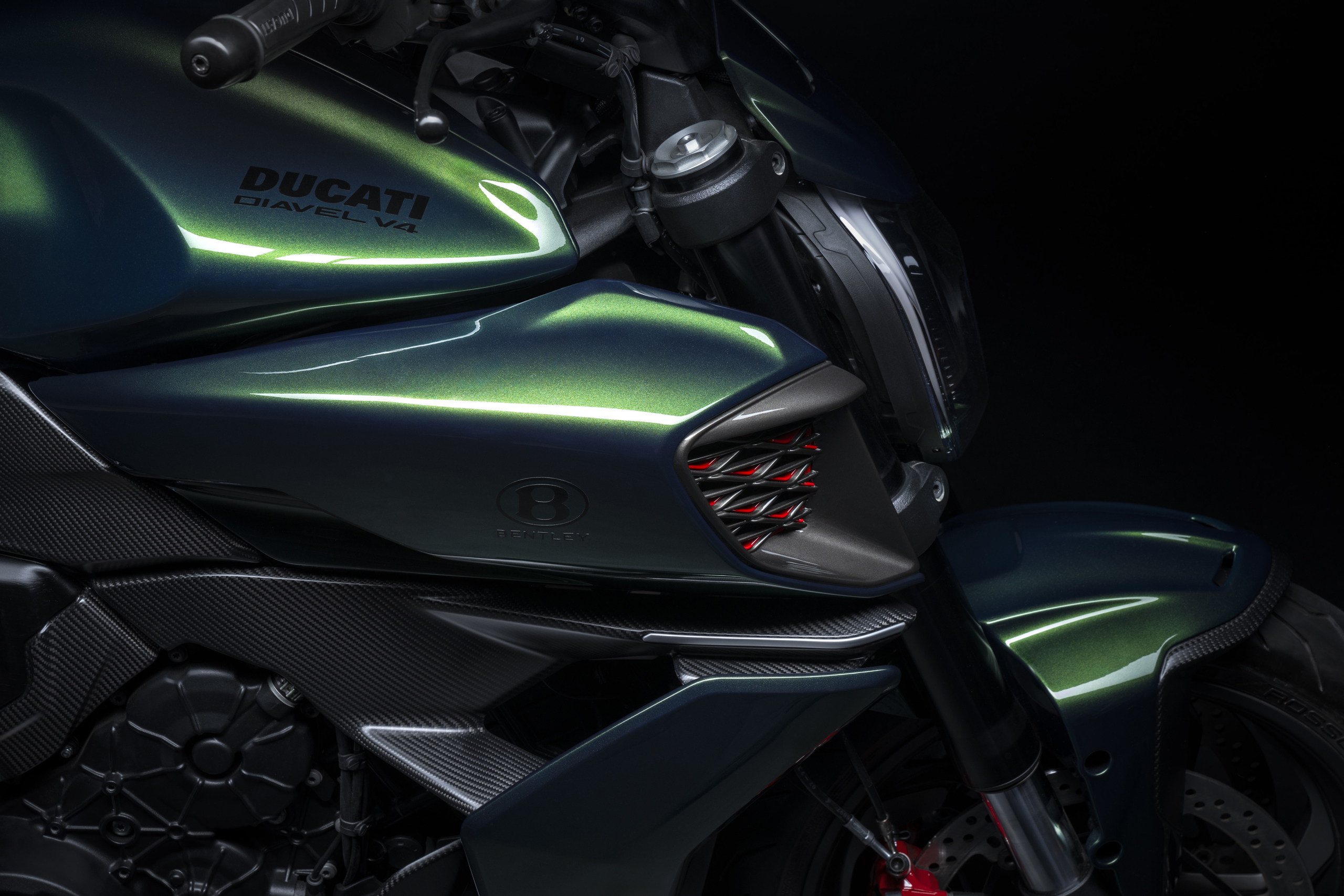 Sobre la base de la base técnica de la Ducati Diabel V4, se integraron numerosos elementos característicos del Bentley Batur, un auto de serie limitada fabricado artesanalmente. Todo se condensa en una motocicleta única en cuanto a elegancia y diseño. Se limitará a 500+50 ejemplares, estos últimos reservados para los clientes de Bentley.