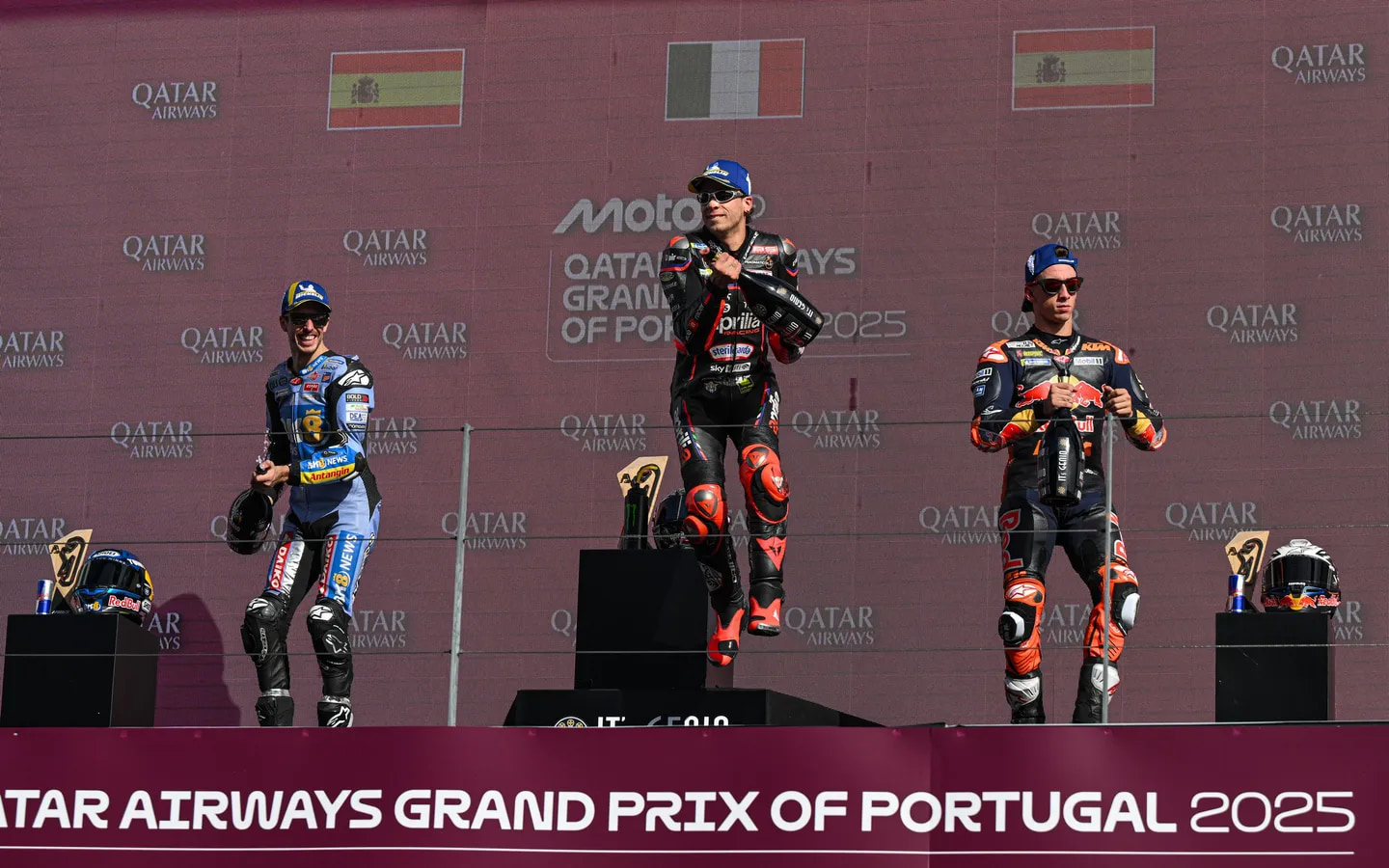 El ecuador de carrera veía cómo el menor de los hermanos pasaba al piloto de KTM, que rápidamente respondía en el siguiente sector. Al comenzar el 8.º giro se dio la misma situación, con Alex consolidando el adelantamiento y Acosta respondiéndole. «La tercera es la vencida», reza el refrán, y así lo fue. A cuatro vueltas para el desenlace, el subcampeón entraba mejor en la primera curva y abría un hueco para consolidar su victoria. Acosta quiso recortar, pero debió conformarse con el 2.º, en lo que Bezzecchi completó el podio.