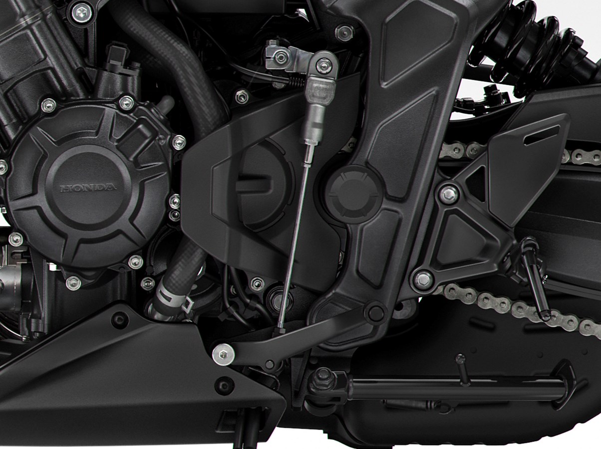 En lo demás, se mantiene la base confiable de la Honda 650R a pesar de la incorporación del e-clutch. El motor continúa siendo el cuatro cilindros en línea DOHC de 649 CC con 4 válvulas por cilindro, refrigerado por líquido y alimentado por inyección electrónica.  Su rendimiento se traduce en 94 CV a 12.000 RPM y 64 Nm a 9500 RPM. En la parte ciclo se erige una horquilla Showa SFF-BP de pistón grande y un amortiguador Pro Link con recorrido de 127 mm.