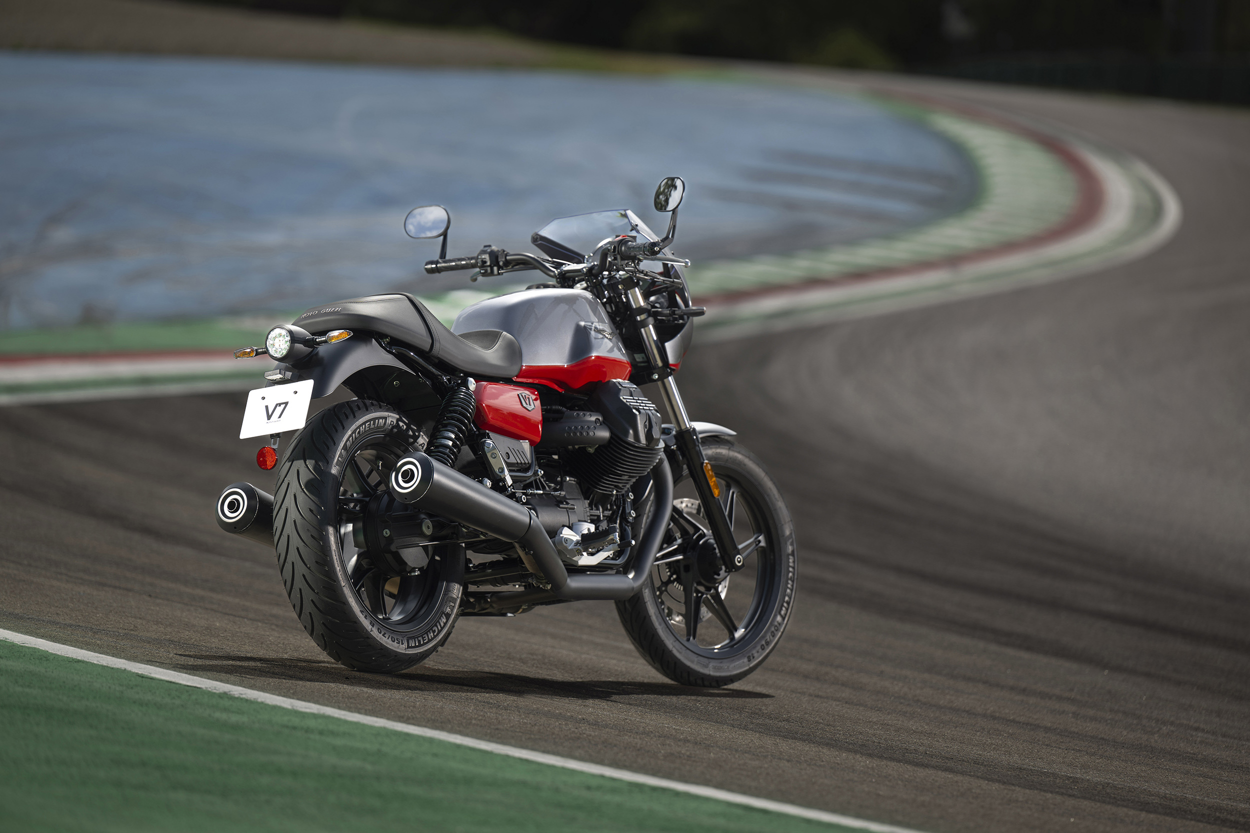 Las principales novedades de este modelo pasan por su equipamiento y diseño. Este modelo posee espejos retrovisores tipo ‘bar end’ al final del manillar, que le confieren un toque estilizado y dinámico al diseño. A su vez, la tapa de combustible de aluminio anodizado en negro aporta un gran componente estético al diseño deportivo. Asimismo la horquilla delantera prescinde del fuelle, en consonancia con el aspecto minimalista que caracteriza a las V7 de la marca italiana. El manillar por su parte muestra una placa distintiva de estas ediciones especiales.