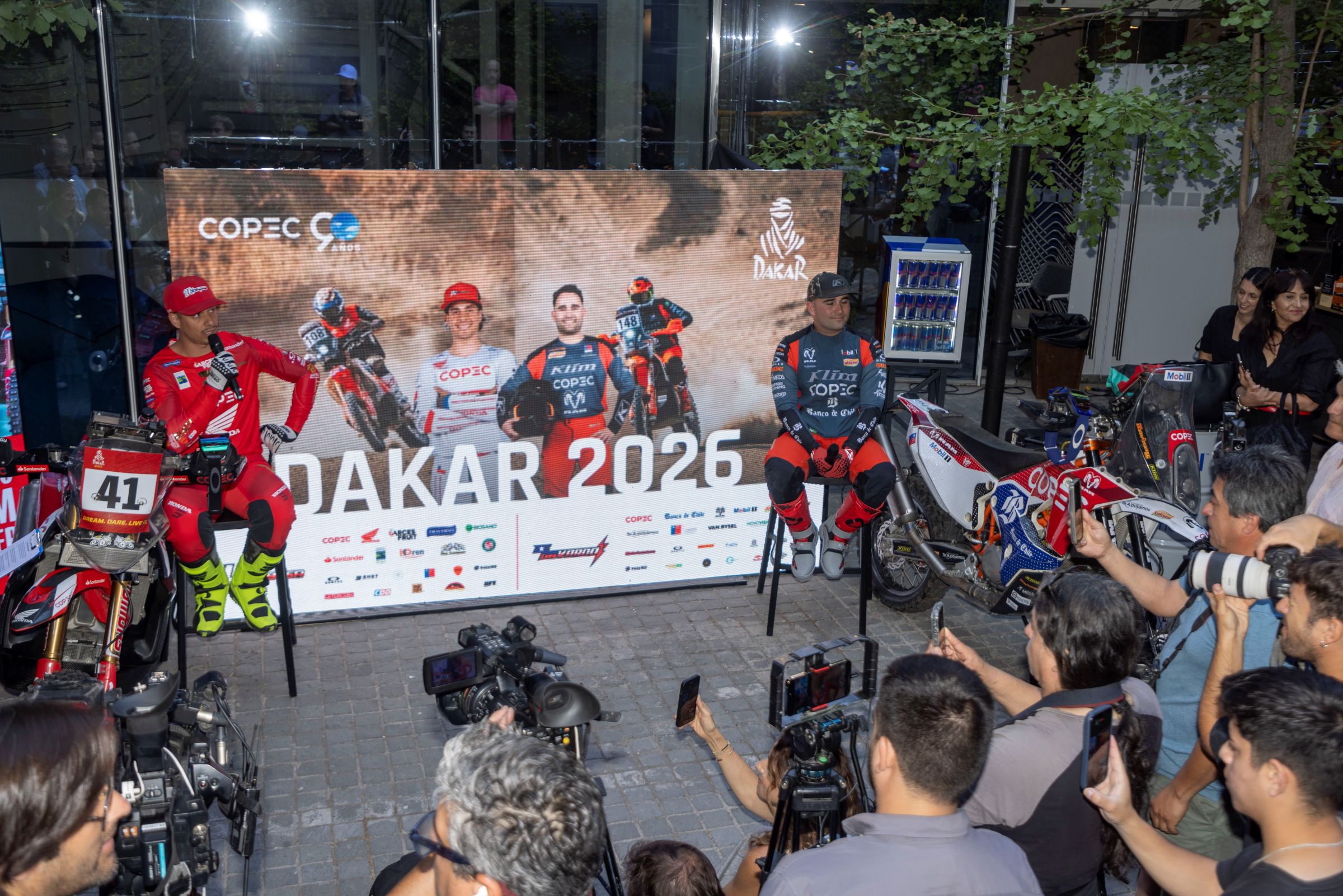 Un frontis del edificio corporativo de Copec, fue el escenario donde Tomás de Gavardo y Ruy Barbosa se dieron cita matutina para hablar de manera oficial sobre lo que será su participación en la próxima edición de Rally Dakar.