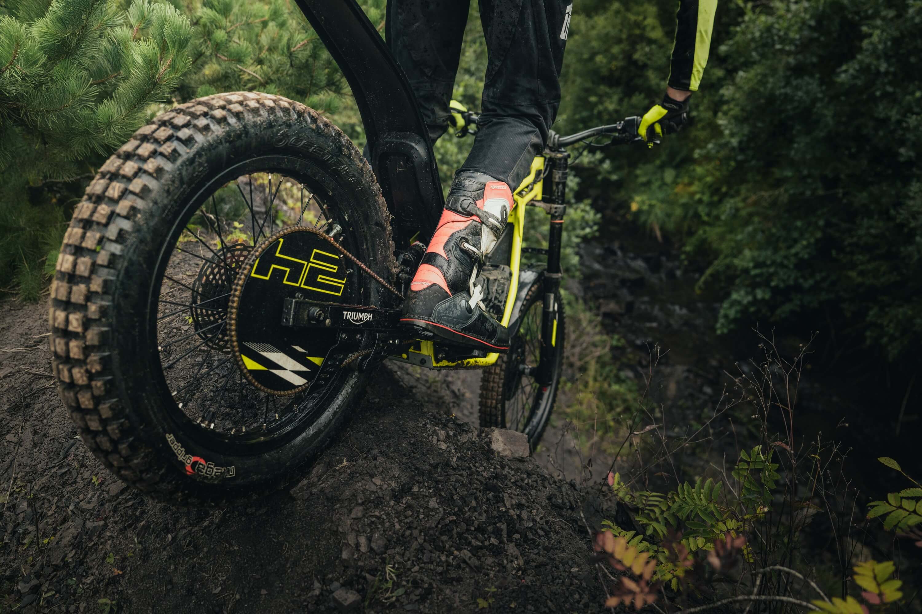 Las motos eléctricas Triumph TXP destacan por su chasis ligero, su ergonomía avanzada, una configuración modular 2 en 1 única y los colores: Performance Yellow y Graphite Black.
